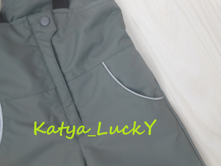 В стиле куртки сшит полукомбез - простая модель с манжетами-резинками, на лямках. Добавлено 2 кармана и вставка из принтованной ткани.