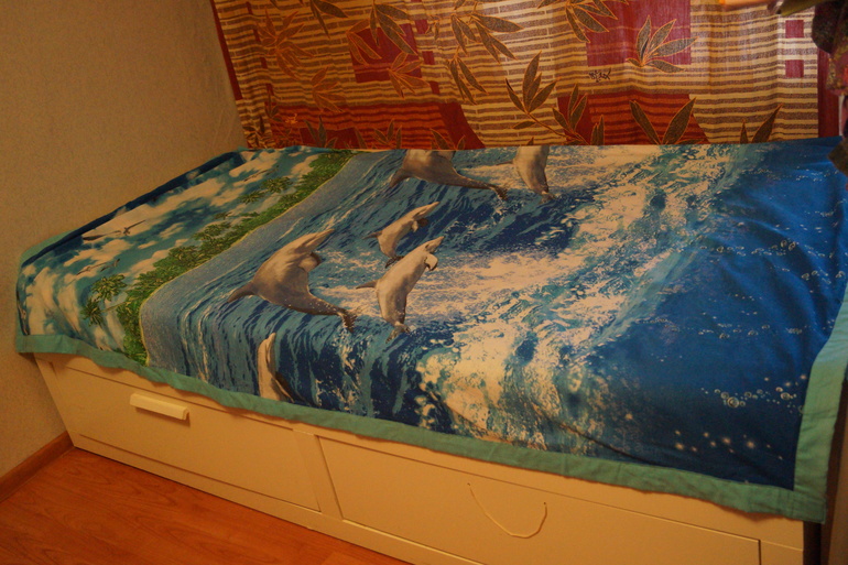 Пододеяльник (на самом деле на фото сложен пополам)Масштабов комнаты не хватает, чтобы сфотографировать полностью)