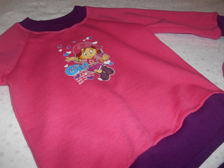 Костюмчик из футера двухнитки х/б - не понравилась ткань , жёсткая такая - сломала на овере 3 иглы пока шила .