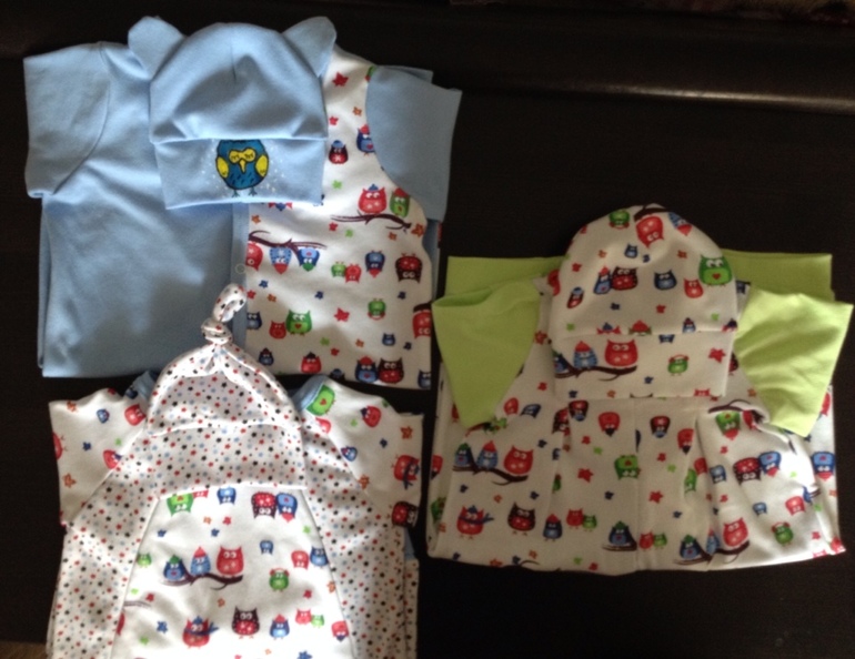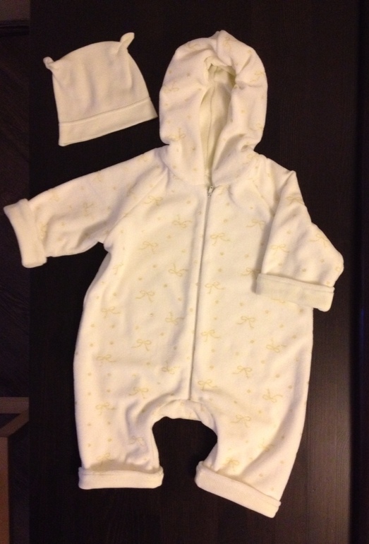 Дорогие мастерицы, шью потихоньку своей малышке. Комбинезончик из оттобре 1-2/2012 размер 56 , ткани интерлок, кулирка. Потайные молнии. Переживала , что будет грубо из-за тесьм молний, но сверху они защитным клапаном отделены от кожи малыша, а снизу уходят в шов. шапочки нашла в интернете.