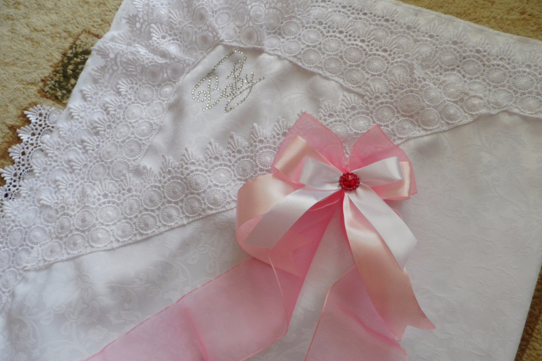 Вот, шился слипик на выписку.... Правда он пока без кнопок. Первый раз попробовала окантовать края на швейной машине. Оооо, как же машинка безщадно растягивает ткань! Хотя и коэффициент брала 0,75. Короче, с этой окантовкой запорола весь слип. Теперь вот даже сомневаюсь его на выписку брать.... Надо думать что-то другое.
