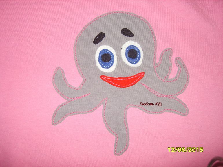 Следующий комплект в подарок для девочки Нелли. Девочка очень шебутная, думала, гадала над рисунком аппликации, и вдруг вспомнился мультик про осьминожков))):