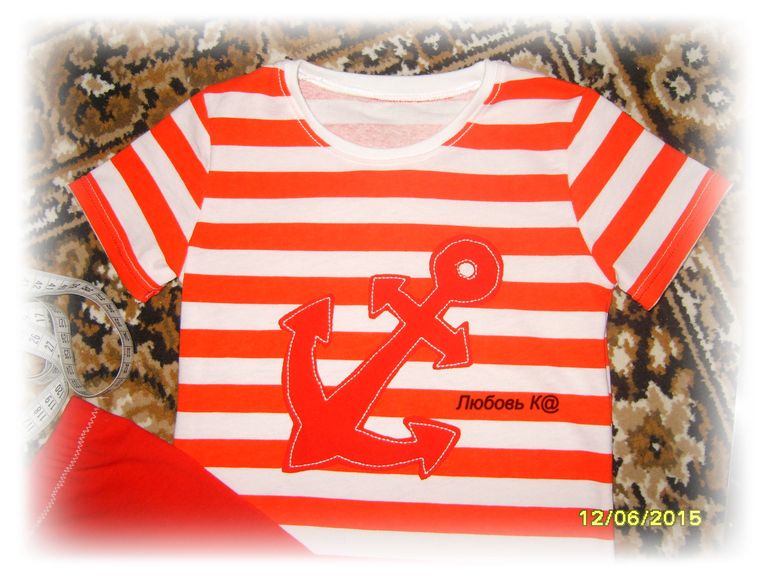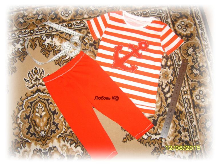 Шьем детямПринесла вам показать несколько отшитых комплектиков на лето. Начну с самого красивого для меня. Сначала задумывалось полосатое платьице, хотела сверху основа футболочки, а снизу продолжить оборочками, но в процессе шитья решила, что быть комплекту. Якорь придал комплекту изюминку. :