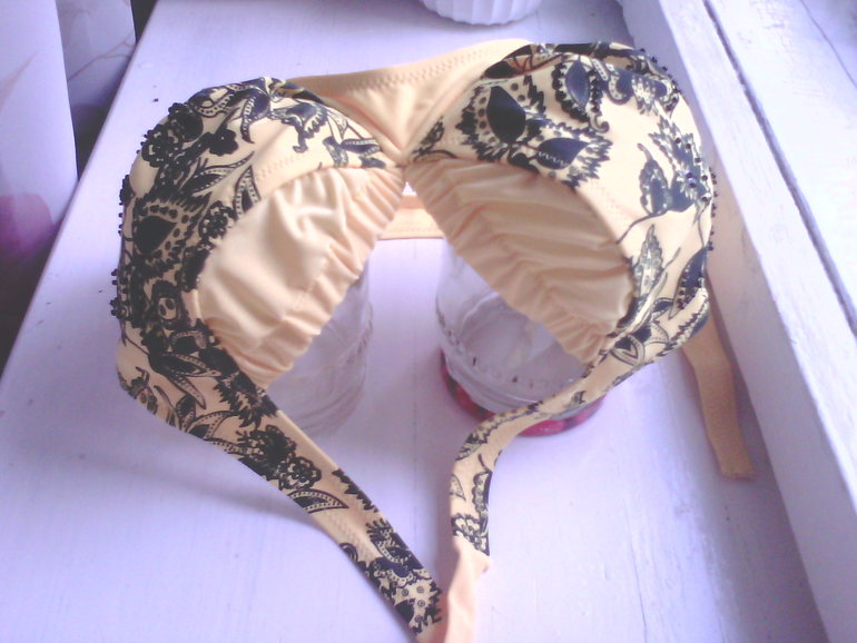 Шьем взрослымПоделюсь идеей. Такая как я не одна и проблема возникает не у меня одной. Так вот о чем я. О купальнике купленном до беременности и одетом 2-3 раза. Теперь сие чудо стало мало. Моя скромная верхняя половина стала больше и в размер купальника ну никак не влазит. Ну да купи другой скажете вы, но где его взять при верхнем 50-52 и нижнем 46. Я не знаю где взять и раньше то мучалась в поисках.Пришлось влючать мозги и садится за машинку. Вот что получилось.