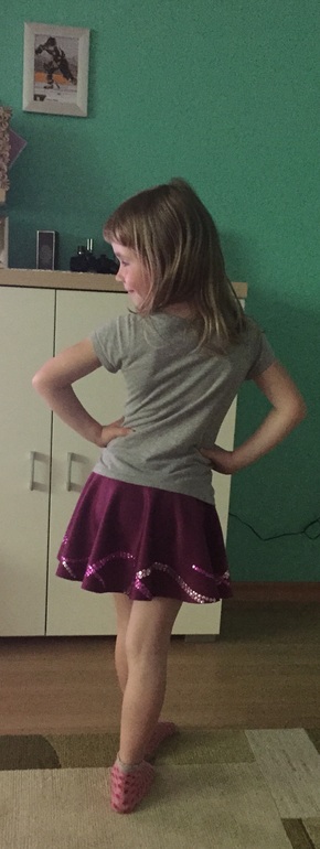 Ну а так как на тренировке тоже хочется блистать, юбочка была расшита паетками двух цветов.