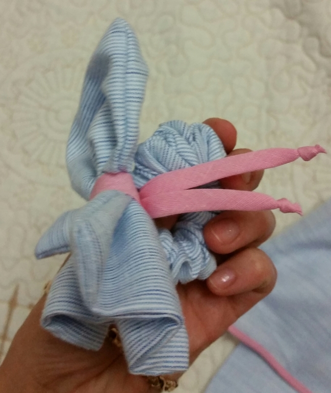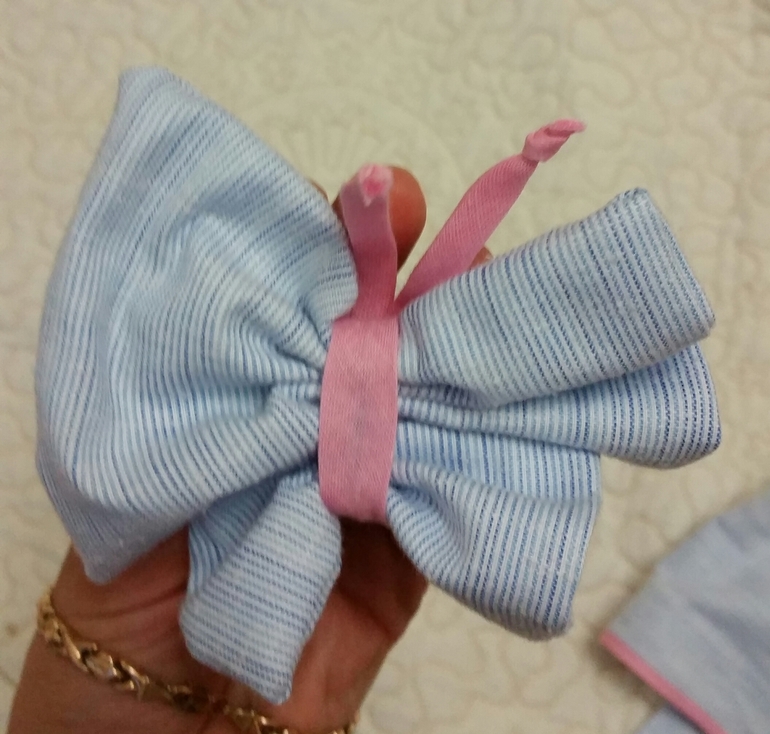 Вот такая косая бабочка получилась и решила сделать из нее резинку для волос. Не знаю оденем или выброшу.