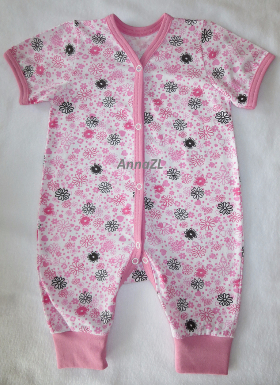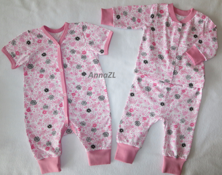 Кулирка набивная в цветочек: слип с коротким рукавом, рубашка, ползунки.