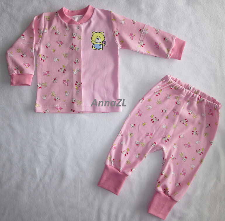 Интерлок розовый и набивной с милыми зверюшками: слип, рубашка и ползунки