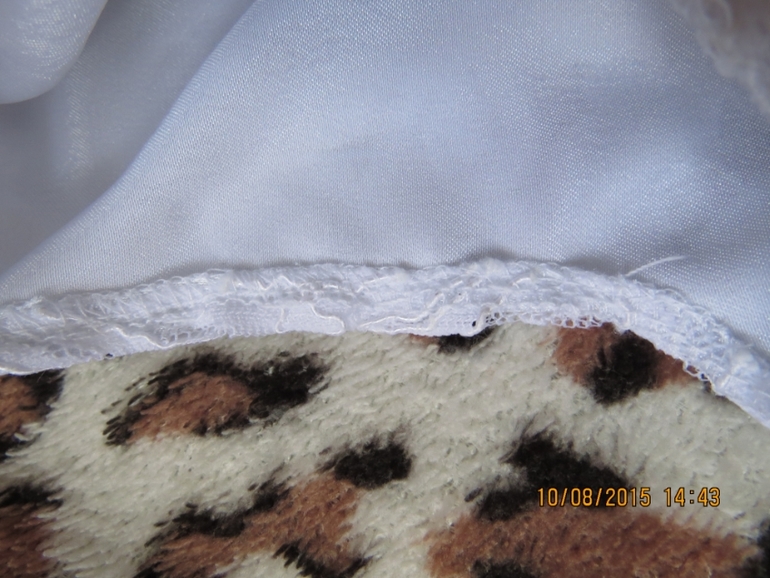 Платье шила в пятницу (накануне регистрации), так что голова уже частично не соображала и я благополучно забыла сделать спинку пошире, чтобы вставить потайную молнию. Потом хотела как-нибудь приладить эту молнию в плечевой шов, но с молниями у меня пока туго, да еще гипюр на сгибе сильно волнится из-за толстых ниток в рисунке ткани, так что решила я сделать там шнуровку атласной лентой, ну и бантик на конце)) Надо же было как то прятать эту красоту)))) Пояс поначалу хотела просто пришить, но так как платье нам оказалось немного широковато, то спереди пояс пришила, чтобы ни куда не убегал, а сзади спросто завязала на бантик). Горловину и проймы рукавов просто обработала на оверлоке и подшила. Знаю, что платье с подкладом соединяются совсем по другому, но из под гипюра это совсем некрасиво смотрится(((( Так что сделала так. До идеала конечно далеко, но я довольна как слон))))))