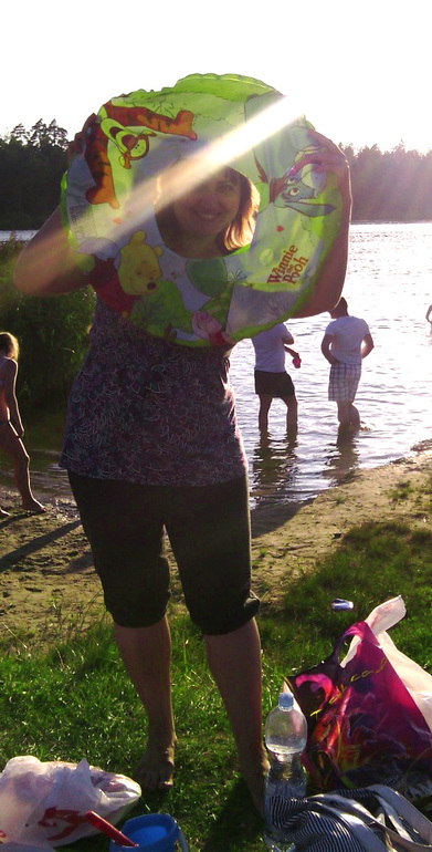 И на местный Орехово-зуевский пляж успела одеть до отъезда.Пикничок устраивали с арбузом,фруктами.Макс давно просил пикник на пляже ))