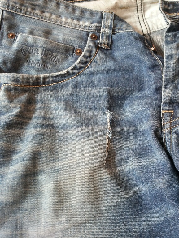Новая жизнь старых вещейМуж порвал свои любимые джинсы Pepe, как умудрился -загадка....Имеет ли смысл нести в ателье, или только на выброс теперь? Не представляю, что можно с ними придумать, ладно бы порез был горизонтально, а этот вертикально....Заранее огромное спасибо!