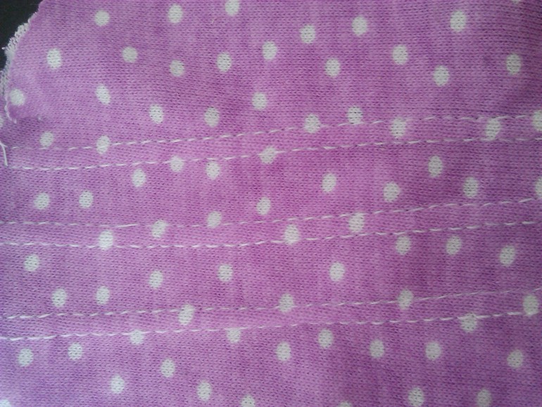 теперь настраиваю 2ную иглу, и как только не ругалась...но в итоге вроде что то получилось под срезом фото и вопрос изнанка такая у двойной строчки и должна быть или надо еще регулировать?