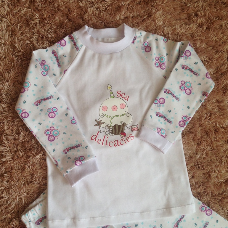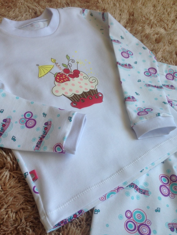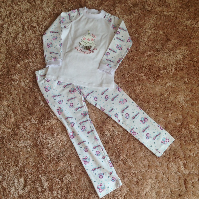 Шьем детямПошились две пижамки для девочек. Одна как всегда для Крестницы Нелички, другая для Машеньки! Размер 122 и 92. Ткань кулирка с лайкрой, впереди белый интерлок, манжеты рибана. Трансферы купила давно, да не куда было пристроить, у меня же ведь мальчик, ему вроде бы пироженые не к чему....