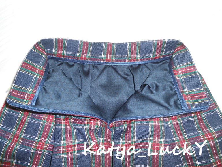Юбка в широкую бантовую складку из шотландки, вискозный подъюбник и красивое крупное гипюровое кружево: