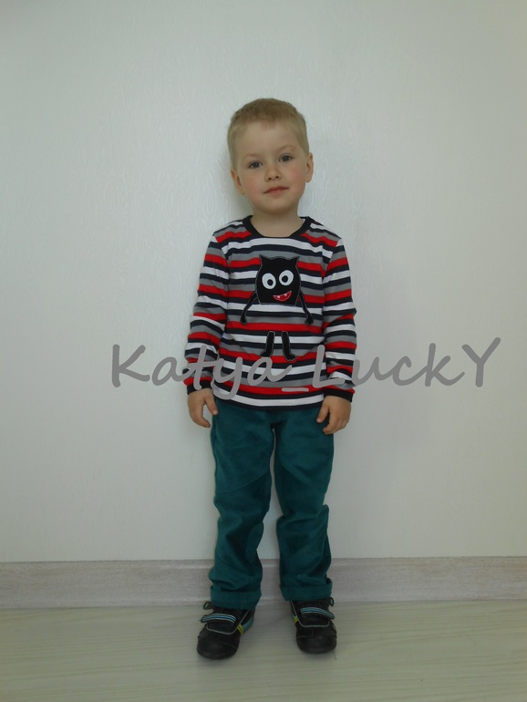 Посадка - как в журнале, выкройку брала размер в размер, ничего не прибавляла. На весну есть небольшой запасик. В принципе, больше двух сезонов Андрей вещи не носит, они для него старые.
