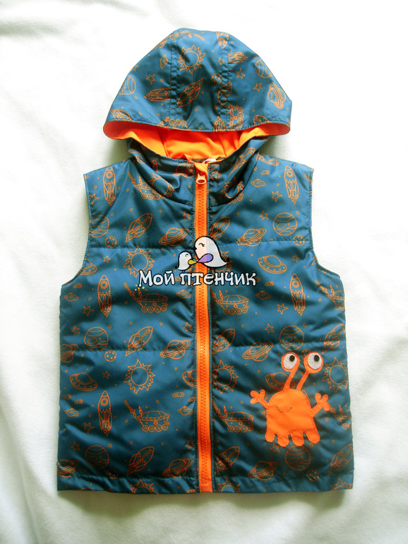 Шьем детямЯ совсем про неё забыла! Лежит у меня такая жилеточка с добродушным инопланетяшкой:)