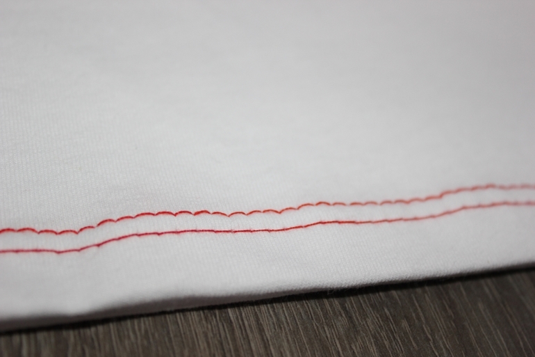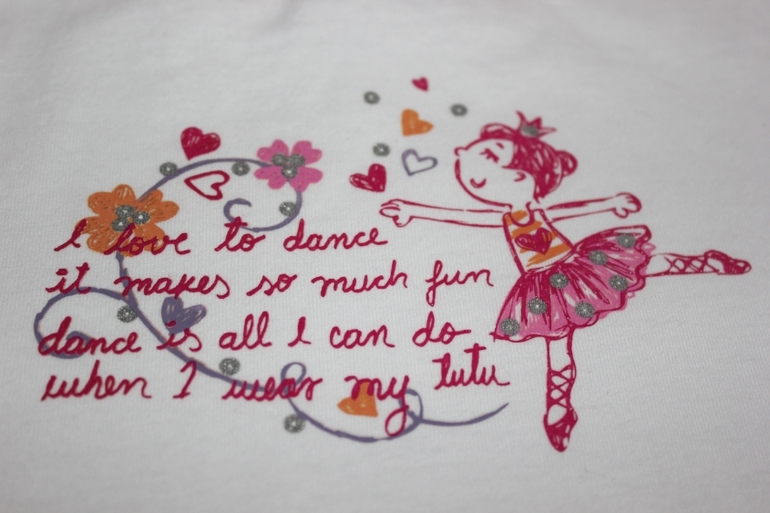 Первый - из белого х/б кулира пенье и малиновой кулирки с лайкрой, на отделке рибана. Спереди термотрансфер.