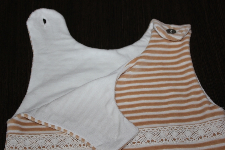 Застежки - пуговички по плечам. Подклад из белого кулира, но не на всю длину, а лишь до половины. На отделке х/б кружево из Китая. Выкройка smalldreamfactory.