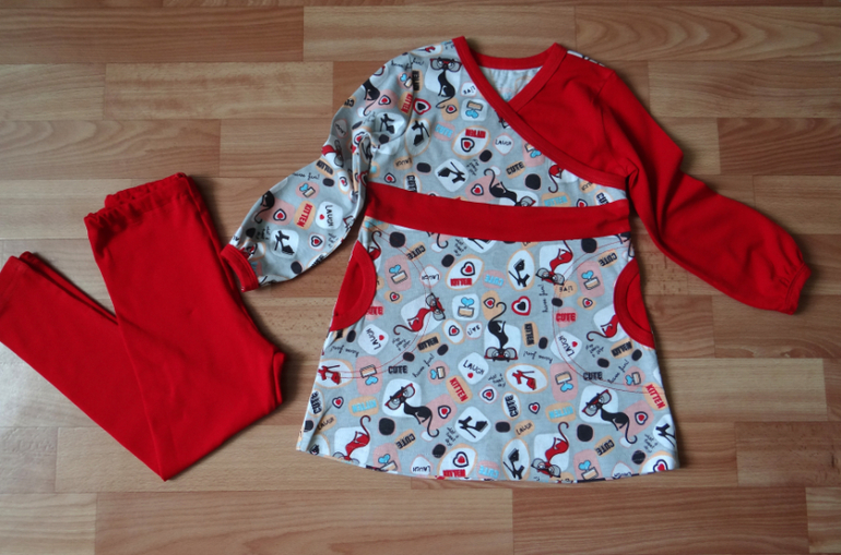Продолжим.. Это в подарок трехгодовалой девочке. Давно хотела сшить туничку по этой выкройке. В легинсах дырочка для корректировки длины резинки.