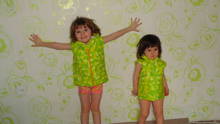 Хорошие вещички! И цвета мои любимые! А салатовая шапка с очками по какой выкройке? И что там внтри?