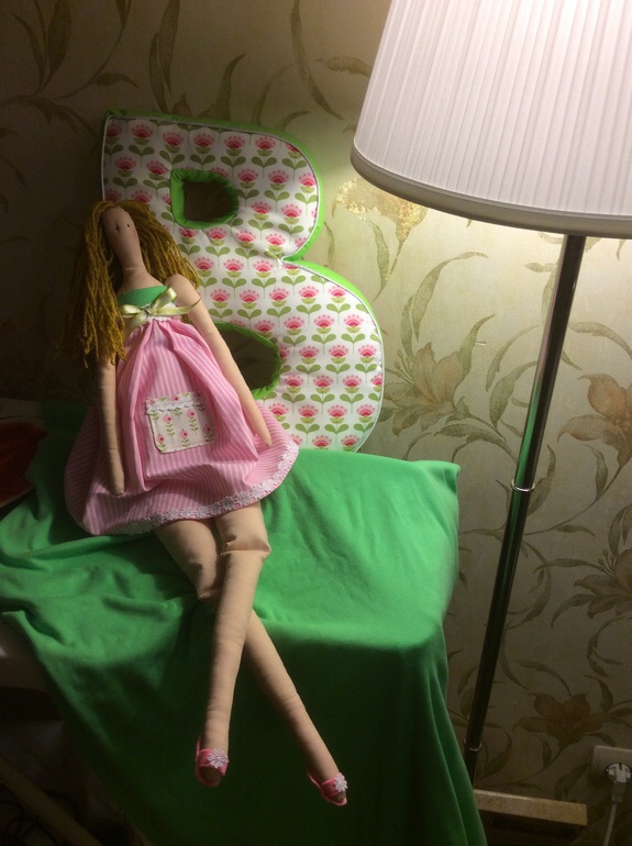 Заказывают уже вторую букву, используют в качестве декора на кровать вместе с другими декоративными подушками. Первую набивала шариками, потом отпарила немного и она стала ровная и плотная. Эту решила попробовать что бы прям надутенькая была, мягкая. Себе в дом такую не делала. Мне больше нравятся квадратные подушки с различным декором