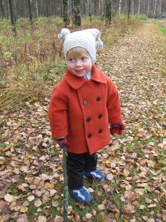 Для первого раза взяла выкройку пальто Оттобре 2006-5, уменьшила на пару размеров, сделала 86, на выходе получила демисезонное двубортное ясельное пальто ))) Для деток по-старше не стала бы брать данную выкройку, хотя в размерной сетке она 104-152.