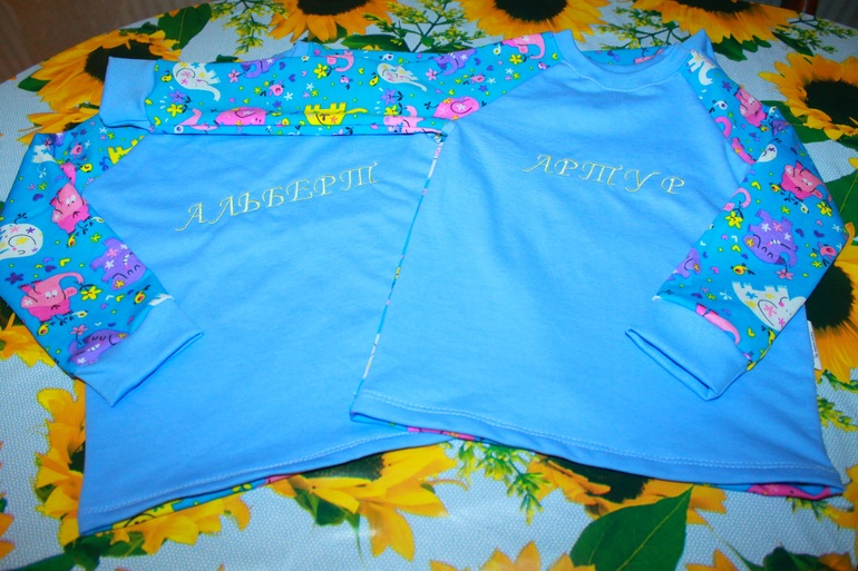 Шьем детямВот такие получились у меня сегодня кофточки из футера с начесиком для племянников мужа, заодно и вышивалку свою опробовала, ну и соответственно научилась качественно стабилизировать трикотаж и правильно его запяливать, главное смекалка и выдумка и вот результаты.