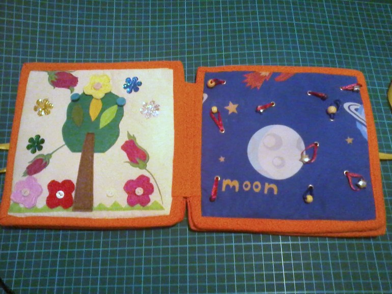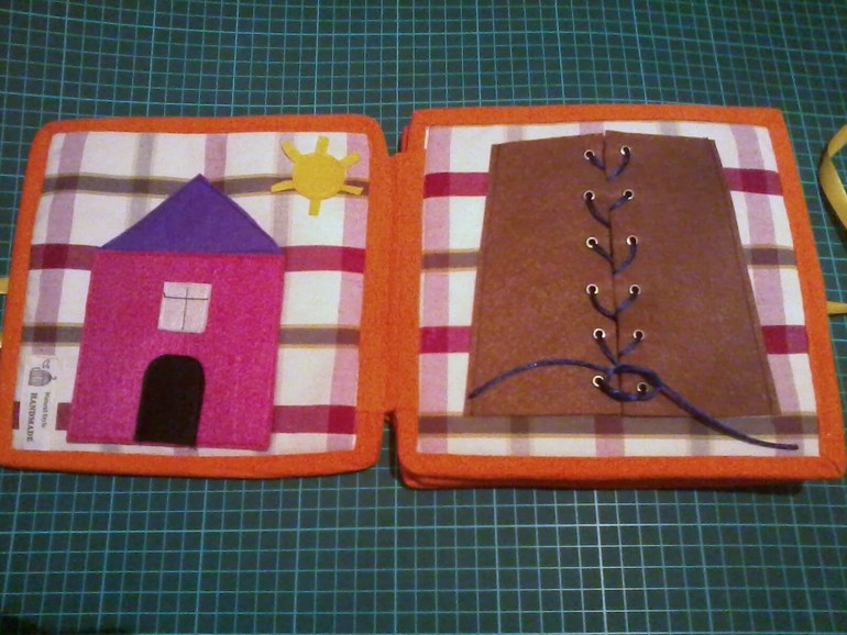 Развивающие игрушки для детейСшилась у меня вот такая книжка на заказ из 4 листов и 6 активных страниц. Фотки с телефона.