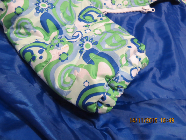 Почитав посты девочек, я поняла что под утеплитель надо куртку расширять, так что на мой 46 (по отто), я решила взять 48, плюс куртку шила в основном основываясь на посте Кати и тоже как и она решила расширить рукава, да к тому же на припуски взяла не 1 см (так как было страшно), а 1,5-2см))). Раскроила все детали, соединила верх с утеплителем, все простегала, соединила спинку и перед и ужаснулась размеру..... там не то что 2 меня запихать можно, а танк спрятать)))) а потом дочка заболела на 3 недели (мы как раз с начале апреля только пошла в садик и это была наша первая серьезная долгая болячка) - так что временно мое шитье приостановилось. А на майские праздники я узнала что Б. Так что пошив обычной куртки перерос в пошив куртки для беременной, благо размеры позволяли)))) В рукавах убралось где то по 3 см (в сложенном виде), на спинке/полочках тоже убиралось около 3 см с каждой стороны, т.е. в обхвате (слово талия ко мне как то сейчас не очень применимо) ушло см 10 точно. В связи с тем убиралось везде и всюду рукава я вшивала раз 10 точно (какие у меня пиреодически получались фонарики, прям любо-дорого, если бы на детском платье). Плюс сам "типа" манжет, тоже перешивала пару раз (МК как делать такой манжет я нашла намного позже, а на тот момент мне почему то подумалось, что надо просто подогнуть плащевку во внутрь).