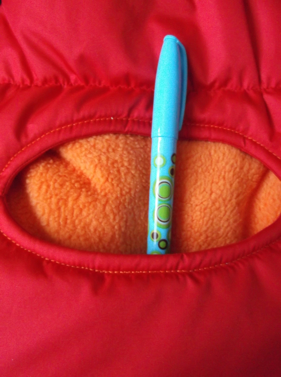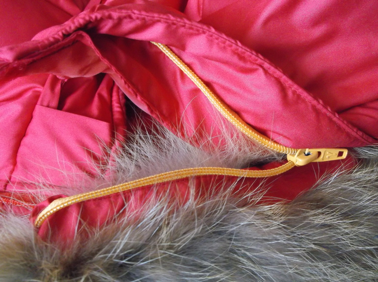 Опушка тоже съемная. Пристроила сюда оранжевую молнию, которую изначально хотела сделать впереди центральной.