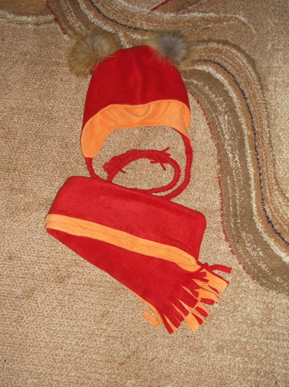 Ну и в дополнение шапка и шарф. Двойной флис. Можно носить так