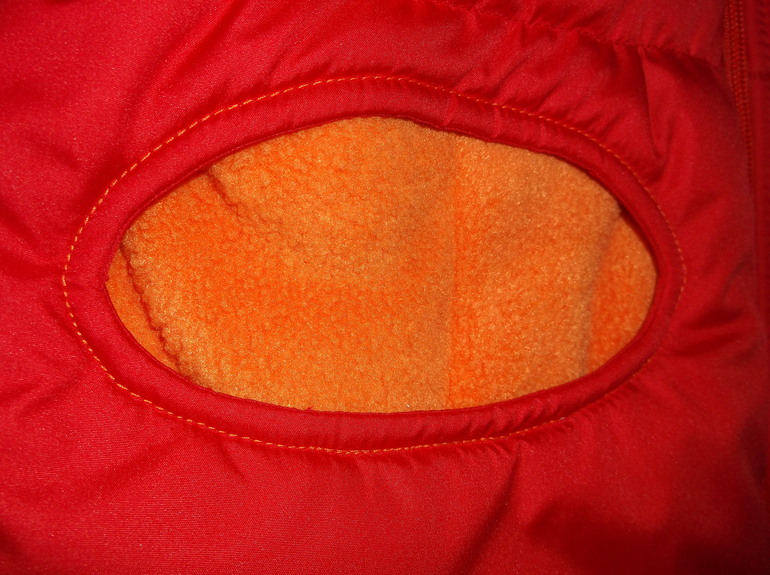 Ветрозащитная планка одна, внутренняя, с защитой от защемления. Ну и кармашки для ушек. Не нравятся они мне... Толи я косяк где-то сделала, толи в выкройке капюшона, но вот не ложатся они там ровно ну никак(((