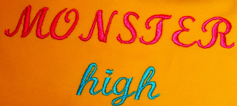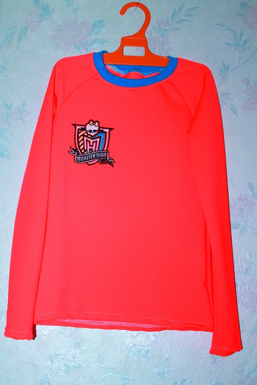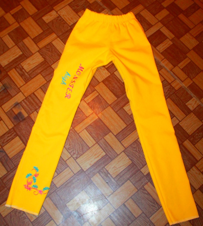 И подарок дочке подруги на 9 летие, девочка фанатка кукол МонстерХай, вот сделала сюрприз и сшила свитшот и джинсовые леггинсы+ вышила эмблему монстиков.
