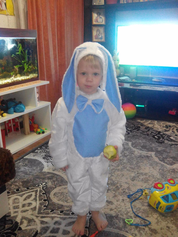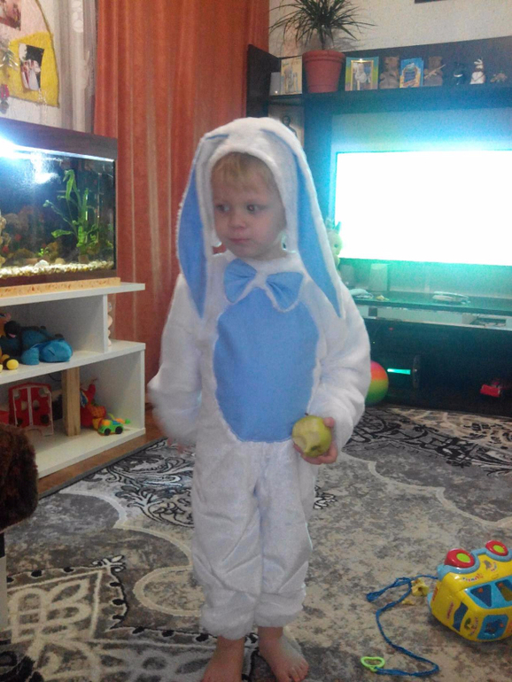 Шьем детямЗдравствуйте рукодельницы . Вот и я к вам показать свои труды. Шью я недавно и только учусь . К вашему вниманию костюм зайчика на новый год . Шила я для сына подруги , он у нее немного попухлее будет. Моделью выступал мой сыночек Федечка. Буду рада советам. (шапочку буду переделывать , немного сделаю побольше и ушки пришью подальше)