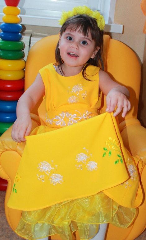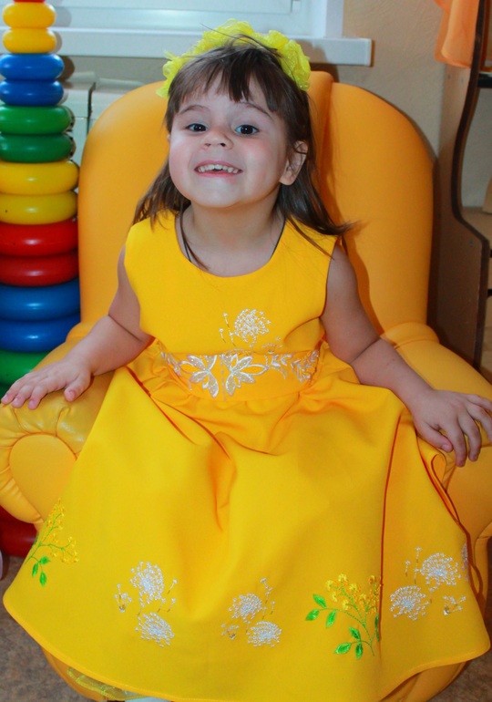 Очаровательная девочка и платье очень красивое. А вышивку сами делали? Очень понравилась.