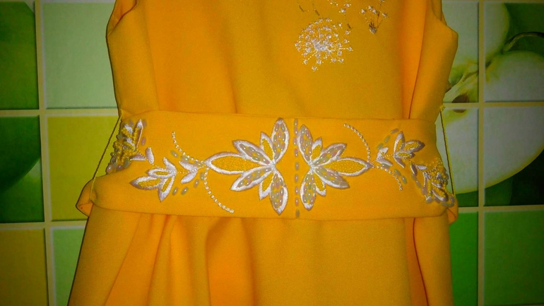 Странно, что вы ей шили специально к утреннику, а платье выглядит как будто на вырост минимум на год. А так ярко и красиво!