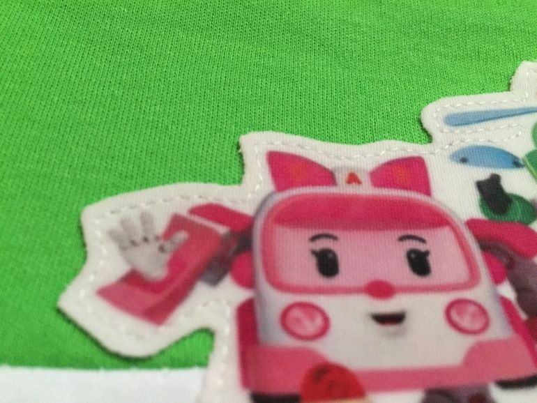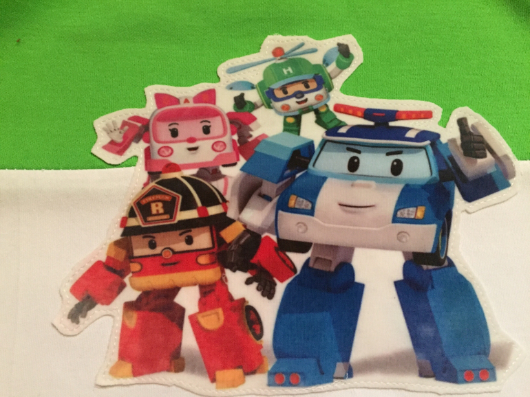 Аппликация - это сублимация переведеная на белый бифлекс проклеяный дублерином, потом все это дело прикалывается к нужному месту, отстрачивается по краю рисунка и потом лишнее срезается. Бирки - это тоже сублимации, только на атласной ленте. Ну вот, раскрыла все свои секреты😏