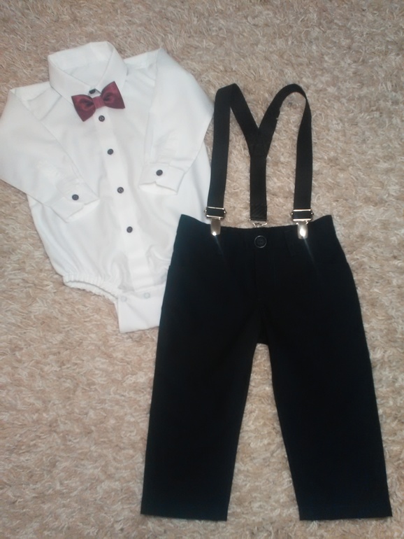 Выкройки те же, что и в предыдущем костюмчике (Оттобре 1/2004, модель 7, Оттобре 3/2009, модель 11), к рубашке прикроила трусики снизу, чтобы вышел боди. Кнопки снизу на боди, контрастные пуговки, манжеты как на взрослой рубашке, стоечка. Брючки с прорезными карманами-обманами сзади, спереди классические кармашки. Подтяжки делала сама в этот раз, не скажу что сложно, но себестоимость выходит не копеечная, фурнитура нынче не дешевая