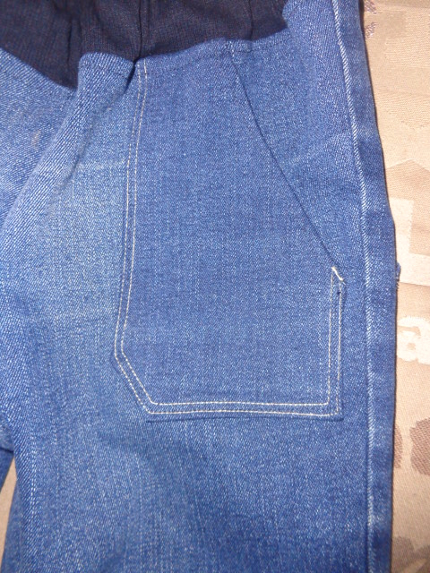 На джинсах задние карманы немного не симметрично , заметила уже когда сшила все детали - переделывать не стала, думаю в носке будет не видно .Передние пришила ннакладные т.к. боковые швы решила не распарывать .