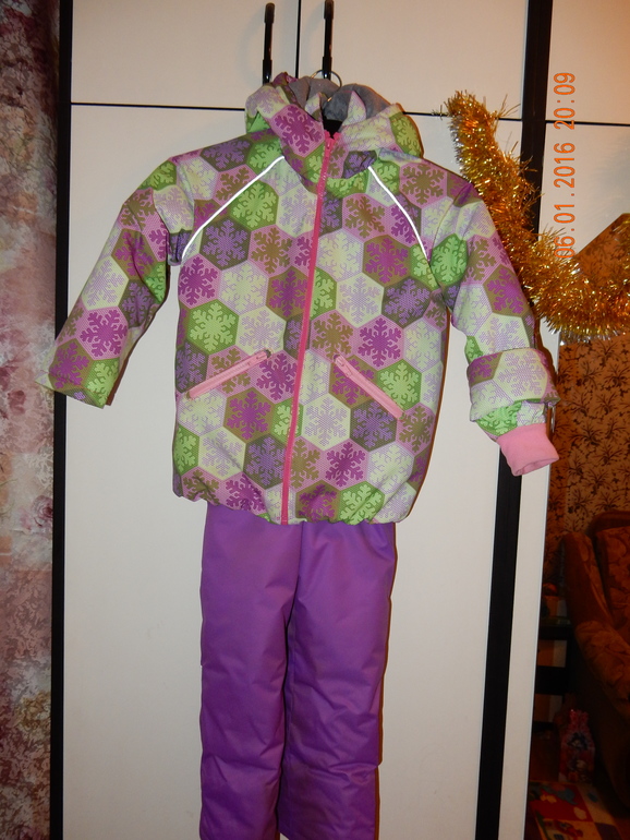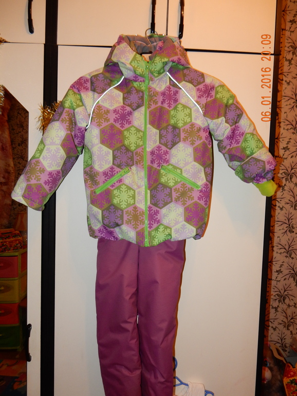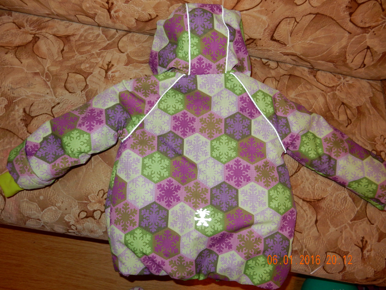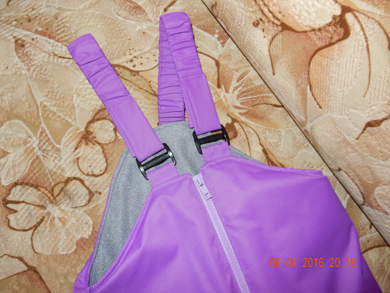 Как видно куртка из одной ткани, правда молнии и манжеты сделаны разными, чтобы дочки не путались и носили каждый свою куртку. Штаны тоже разные по цвету, ну их уже не перепутаешь))) Как я уже писала, верх мембрана, утеплитель альполюкс 150 в куртке и 100 в полукомбенизонах. Подклад каризма и омнихит. По низу куртка сделан типа буфа (взяла идею у Екатерины), поэтому нет отстрочки.