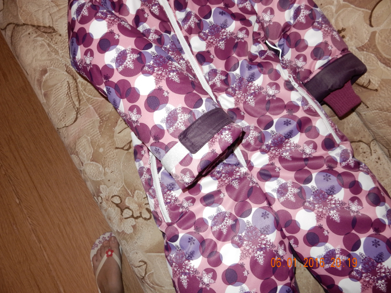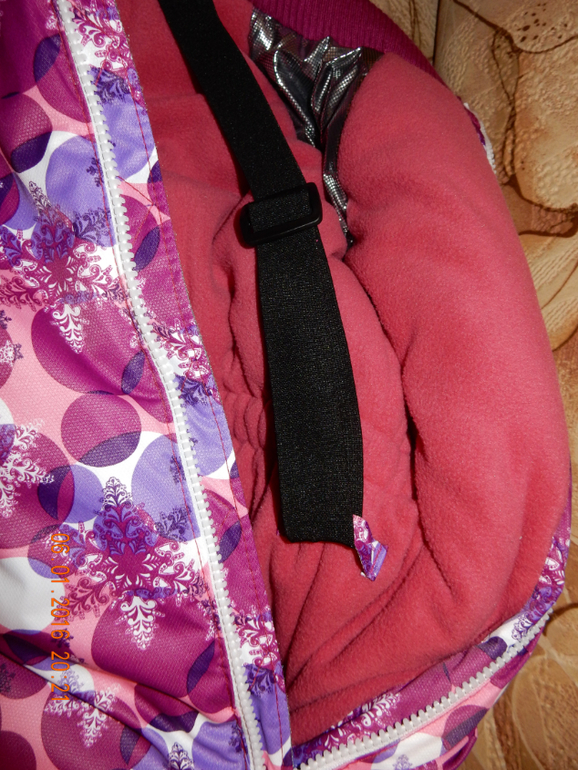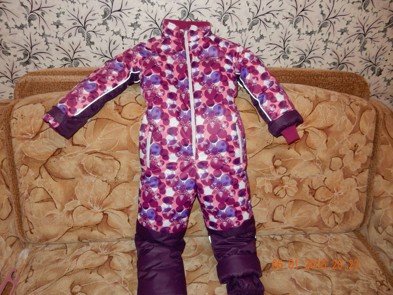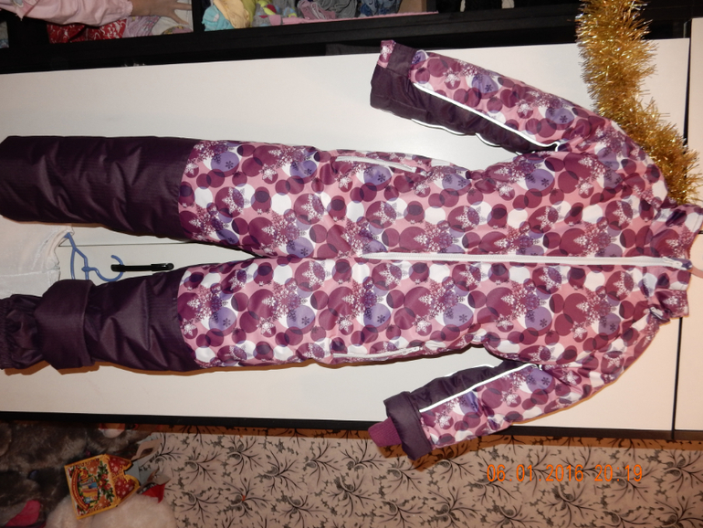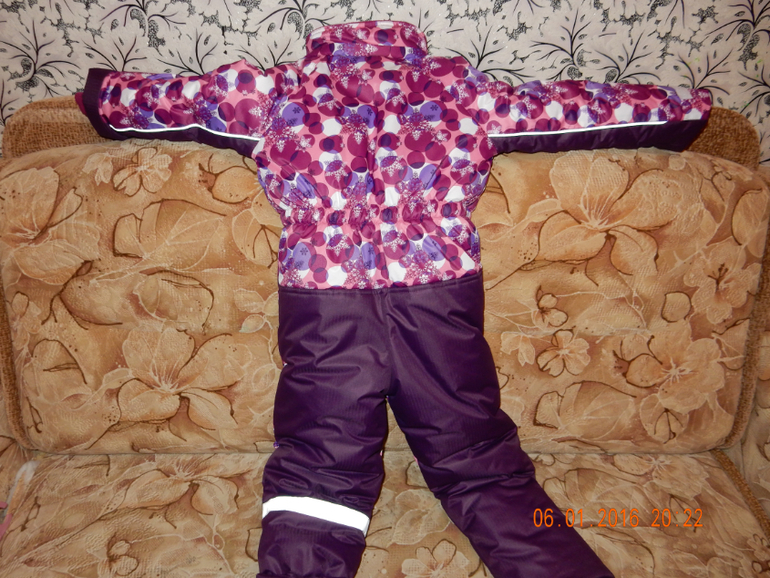 Выкройка всем известная из отто 4/2014 модель 14. Ткань мембрана, утеплитель альполюкс 150+150, подклад флис, каризма и омнихит. В рукавах трикотажные манжеты, в штанинах защита от снега на резинке с латексом. На рукавах первый раз пыталась изобразить паты. В процессе эксплуатации поняла что сделала их узкими, но не критично, свою функцию все равно выполняют. С молнией намучилась жутко