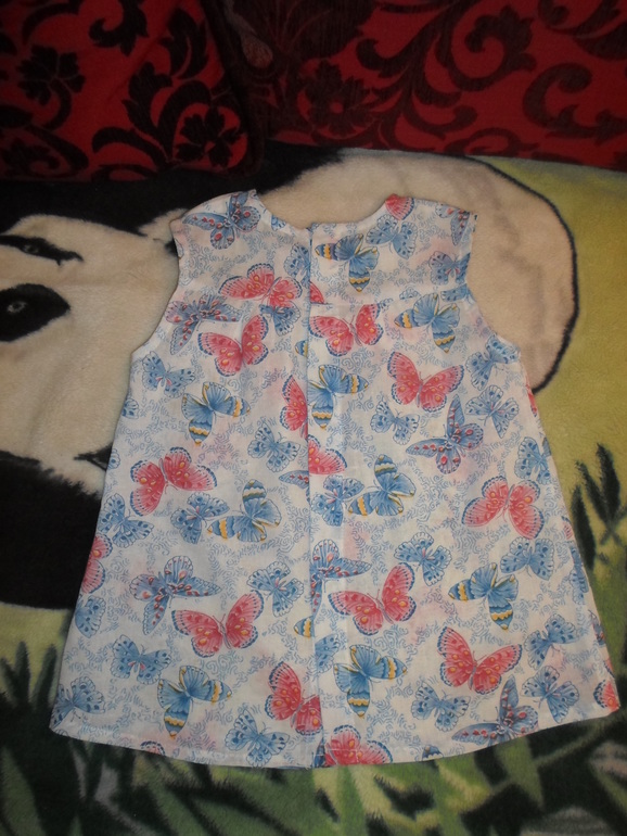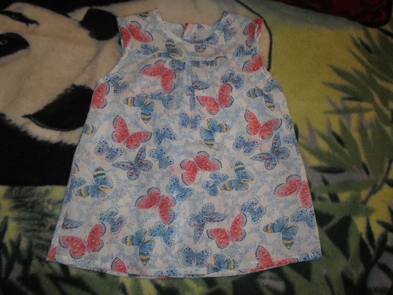Была в шкафу ночнушка новая ситцевая 60-го размера ещё от бабушки мужа, вот её и пустила в ход. ОТТО 4\2014 модель 6, размер 86. Сейчас дочь около 80 см, поэтому шила на вырост, чтоб летом носить можно было. Ничего не изменяла.