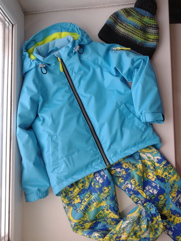 Куртка по своей выкройке. Мембрана бирюза, изософт 80, флис тонкий и в рукавах каризма гладкой стороной. В капюшоне без утеплителя, флис толстенький. Шапка покупная.