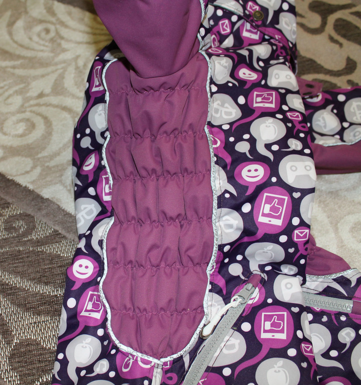 Боковые вставки простеганы ниткой-резинкой с изософтом 60. Вставки на рукавах и боковые вставки отделаны светоотражающим кантом.