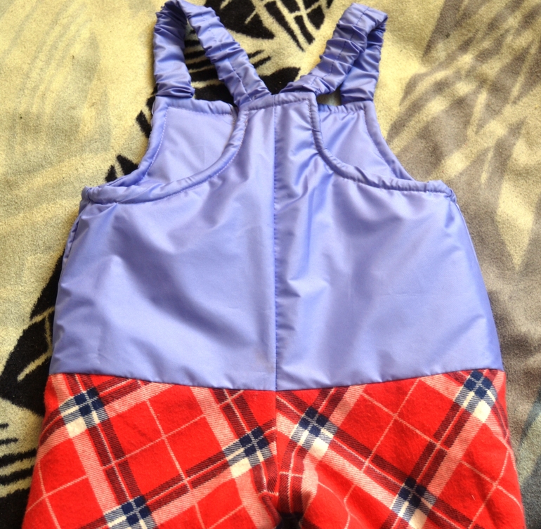С изнанки.На подкладе- советская фланель из бабулиных запасов.Основная ткань- дюспо, альполюкс 100.Внизу подгиб.Ближе не сфоткала- штаны в стирке.