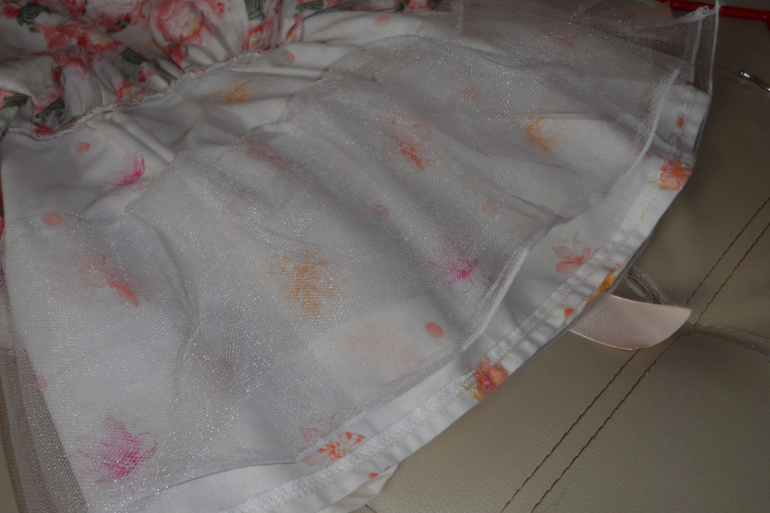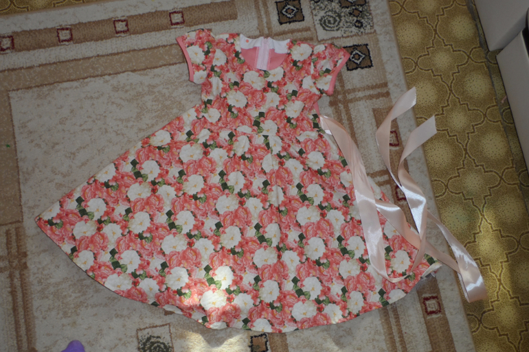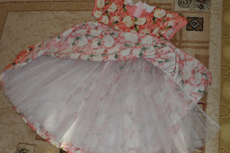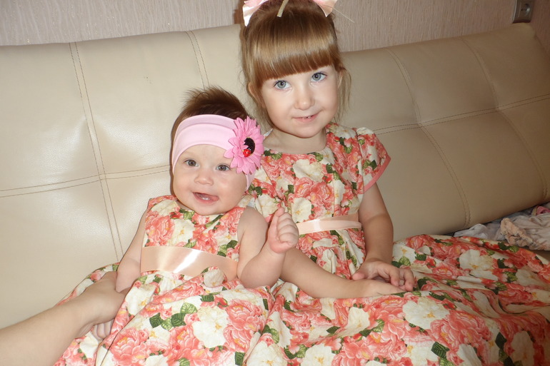 Итак, сшила платьица для дочек. Младшей по выкройке отто 2013-6. размер 80 на ее рост 74 (это я с запасом на лето). Внутри полностью на подкладе и с пришитой оборкой фатина для пышности. А старшей из 2011-3. Взяла только верх, а юбка - полусолнце. Горловину обработала обтачкой, а рукава бейкой. Внутри фатиновый подъюбник. Кроила 4 солнца и сшивала между собой в одно "солнце".