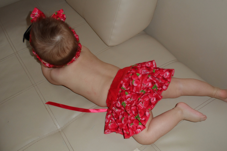 Ну и своей младшей трусиков на памперс с рюшами сшила. Так называемые блумеры. Ох, как же я их обожаю! так мелкие в них классно смотрятся! Выкройку сама строила. С малинками - рюши из американского хлопка, а основа трикотаж. А вторые полностью из ситца. Мне кажется, ситец даже лучше подходит. Получаются легкие, воздушные и не жаркие.