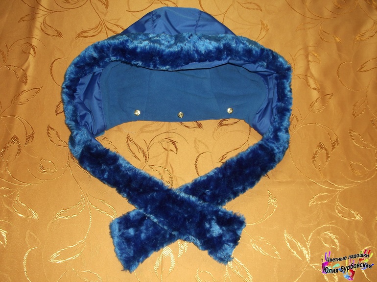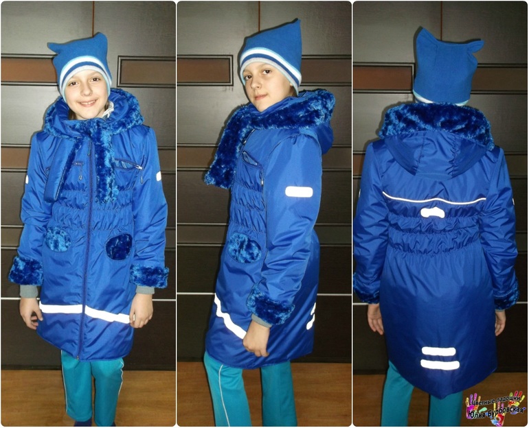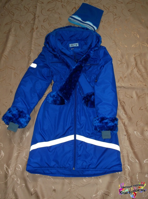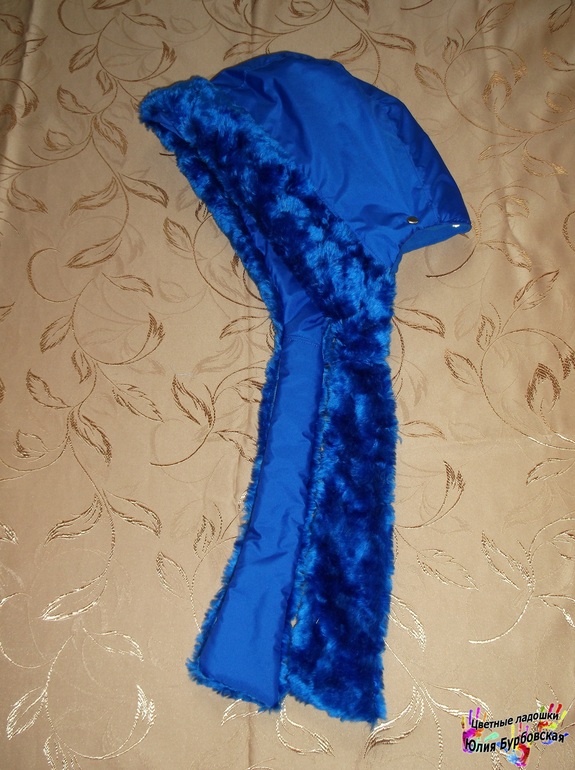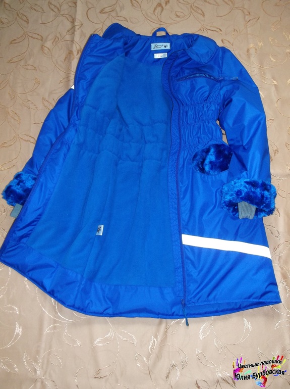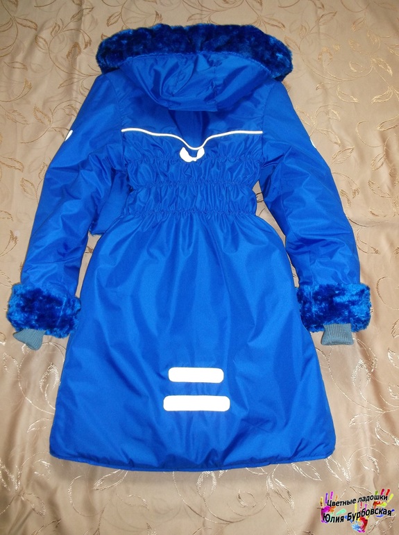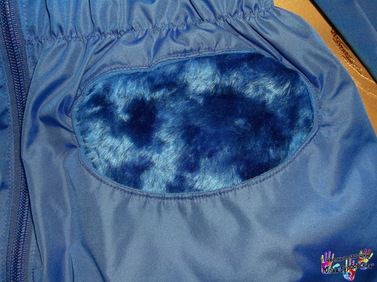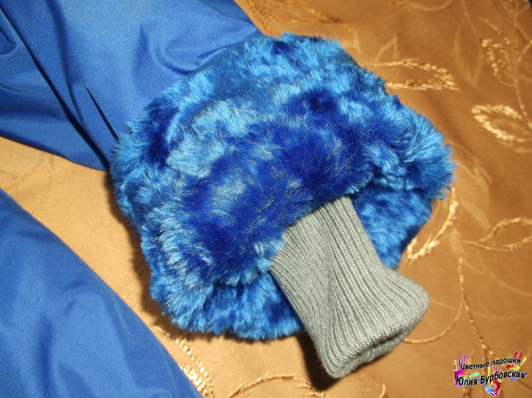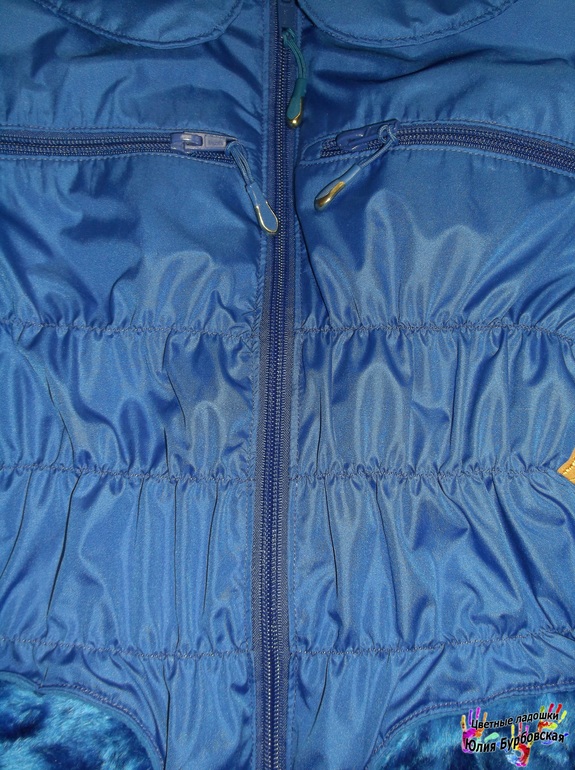 Ну, совсем одинаково не получилось конечно, но похоже. Выкройку даже менять не стала, та рассчитана на 200г утеплителя, здесь сиберия 100, но и так нормально, чуточку посвободнее получилось. Верх дюспа василек, подклад тонкий флис василек, в рукавах тонкая подкладочная и искусственный мех мерлушка. Собственно именно он, попав ко мне в руки, привнес идею сшить что-нибудь очень-очень синее)))