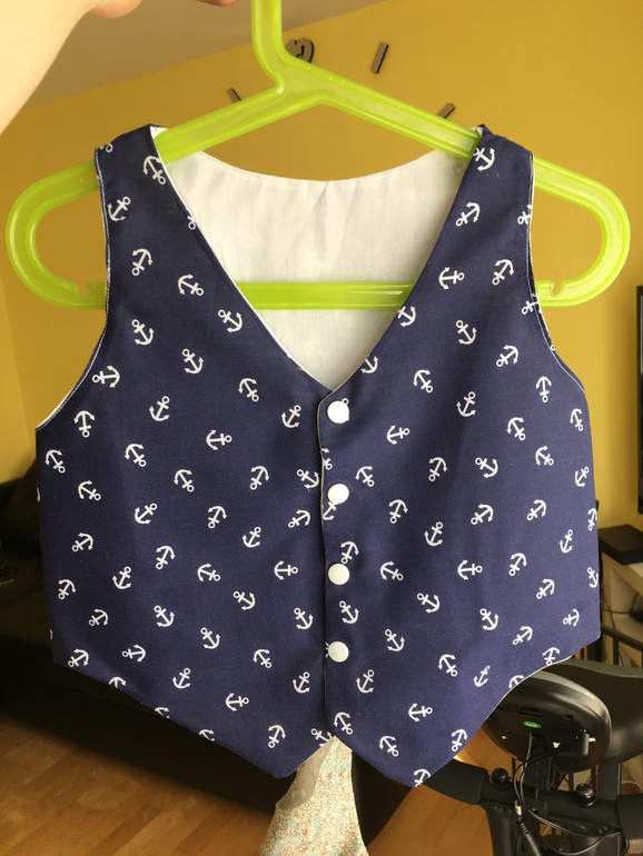 Сыну надо правда жилетку померить с белой рубашечкой, не сочетается с клеткой. Но это первая примерка)