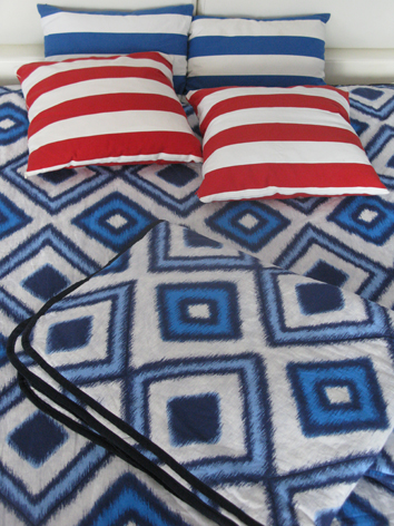 Какая интересная расцветка:) прочитала: летние одеяла, смотрю на фото - на кровати лежит флисовый плед, думаю ну наверно дальше еще фото будет. Еще раз прочитала внимательно - ткань поплин. Ну подушки вижу, а одеяло то думаю где? Только с раза 4 до меня дошло, что это не флисовый плед, а и есть то самое одеяло из поплина))))) Клево!